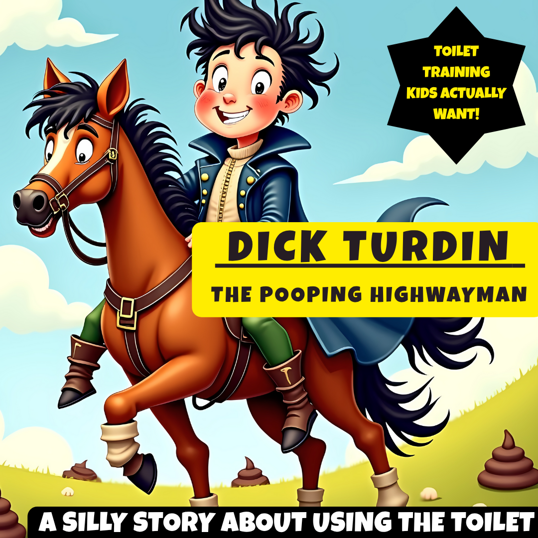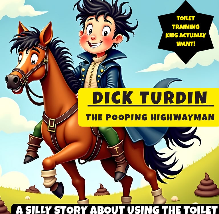 Dick Turdin – The Pooping Highwayman is a hilarious, high-energy potty-training book for toddlers aged 2–5 that turns toilet training into an exciting story children want to follow. Packed with humour, confidence-building moments, and a clear message that poop belongs in the toilet, it helps little ones feel proud, motivated, and ready to try for themselves.